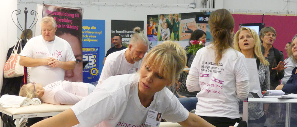 2018 och 2019 var Sabine Rosén Utbildningar med på Allt för hälsan-mässan med en stor monter, fyra behandlingsbänkar och tolv Kinesiologer, alla utbildade vid skolan. Det blev två intensiva helger med många härliga möten. Lyssna till några av kinesiologernas upplevelse av helgen 2018. Hur det var att få möta människor som inte visste vad Kinesiologi var och att få visa dem yrkets möjligheter att användas inom hälsa, fitness, idrott och rehab för att öka styrkan, läka skador och balansera.