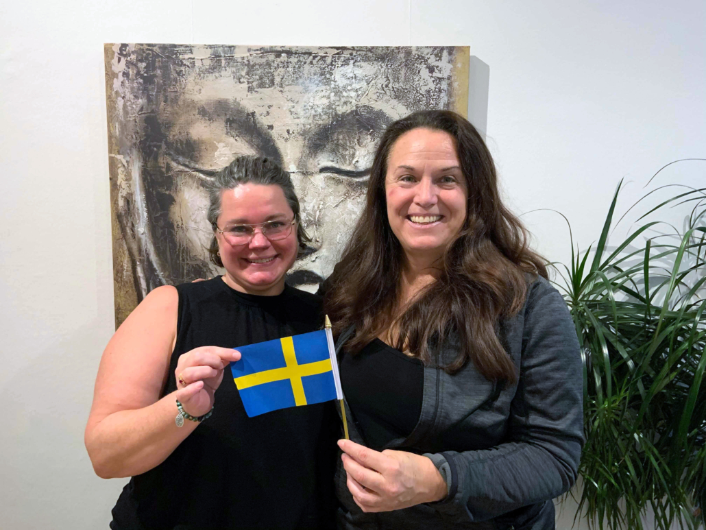 Anne föreläser runt om i världen, och Sverige var det tionde landet hon besökte för att dela med sig av sin metod. Här syns hon på foto med elever under helgens workshop på vår kinesiologiskola vid Odenplan, och med Sabine Rosén, grundare av vår skola.